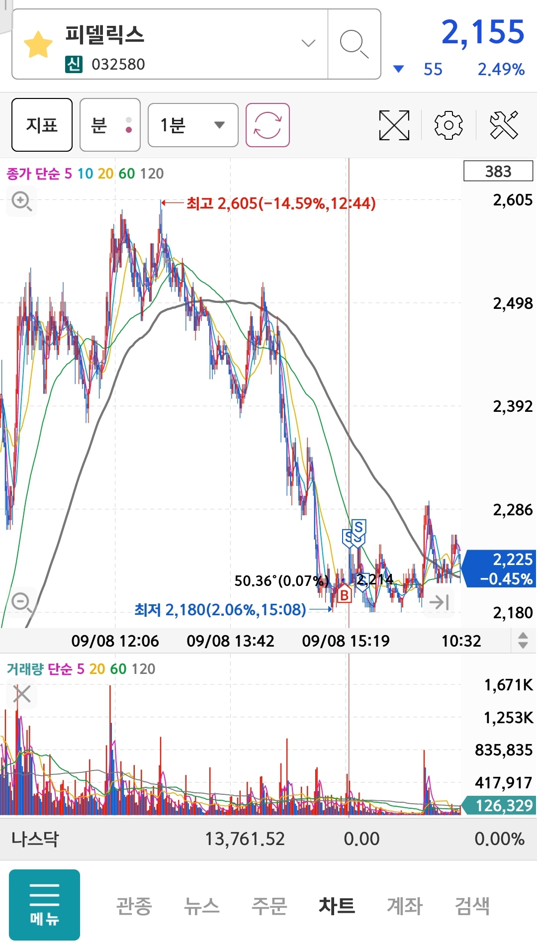 - 하락안정되고 다시 에스피스템즈 상한가 안착에 손절처리